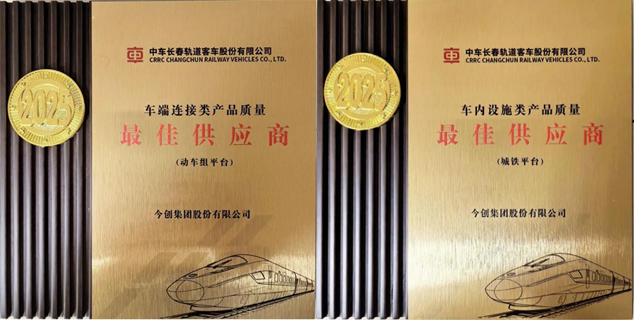近日,中车长春轨道客车股份有限公司(以下简称“中车长客股份公司”)召开“以质为基・数智赋能・协同共赢 —— 共筑高质量供应链新生态”供应商大会。会上,今创集团凭借优良的产品品质与服务实力,一举摘得“城轨平台车内设施类产品质量最佳供应商”“高铁平台车端连接类产品质量最佳供应商”两个奖项!